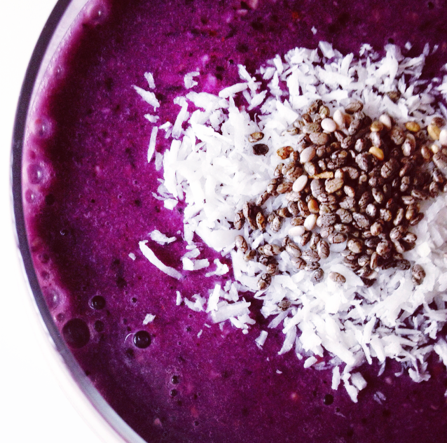 Directions: Blend together and garnish with unsweetened shredded coconut and 1 tsp Chia seeds