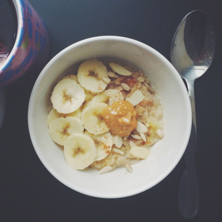 Gloomy mornings means I want to be wrapped up in a warm blanket, book in my lap and a warm bowl of oatmeal with the perfect cup of tea beside me. Ready in 3-5 minutes, boil or microwave 1/3 cup of oats and quinoa in 2/3 cup of water. Top it off with sliced banana, cinnamon, pumpkin seeds, sliced almonds, chia seeds and a tsp. of natural peanut butter. Tastes delish! Happy Tuesday xo